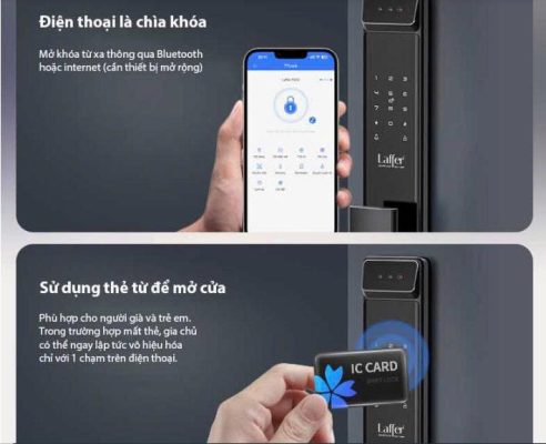 – Mở khóa từ xa bằng Bluetooth hoặc Wifi, bấm là mở cửa.
